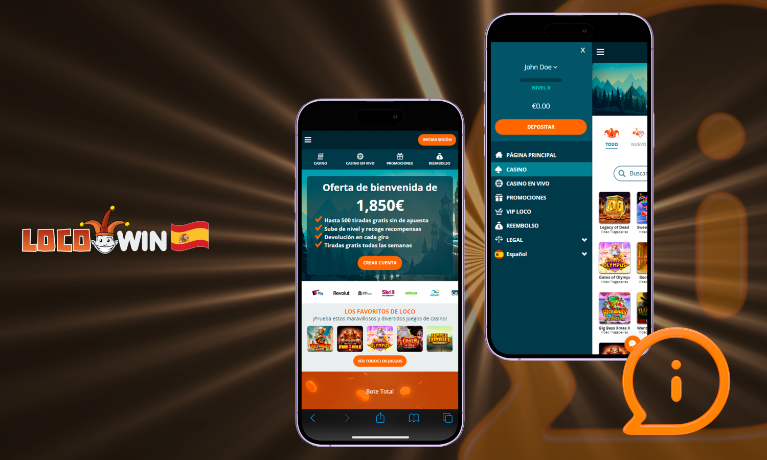 Los Jugadores de España tendrán acceso a las mismas funciones en la Locowin app móvil que en la página web. A continuación encontrarás información sobre las principales opciones.